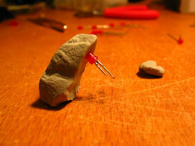 Trate de no conseguirlo en los dedos. O si usted tiene algunos acetona en mano. :) Usted no debe tener gotas de pegamento ya que lo absorbe todo y se encenderá el LED y la otra pierna. Terminé no necesitaba, pero en la foto es una manera para colgar boca abajo el LED en un trozo de clap para el pegamento gotea en la parte inferior (no recomiendo esto ya que quieres pegamento en la parte superior de la pierna y no la parte inferior, pero mostrarlo ya que tal vez es útil en otros casos).