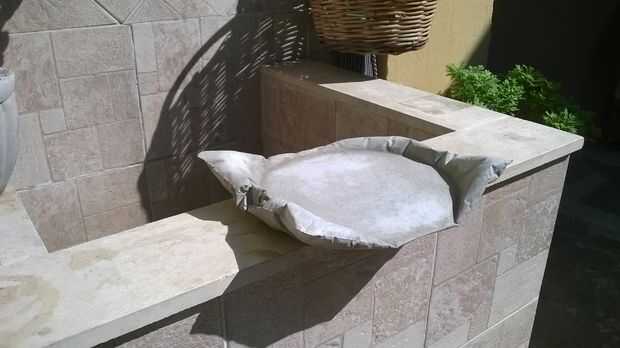 Después de llenar la bolsa con hormigón y asegurándose de que nada se escapa y sin aire dentro, le a guide de la imaginación a lo que quieres hacer. No llene con mucho cemento para poder cambiar su forma sin embargo que como.