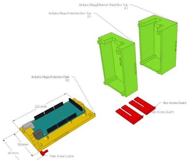 Oh, y si corres un shield Ethernet he incluido una tapa de caja que puede alojar dos tarjetas perfectamente.