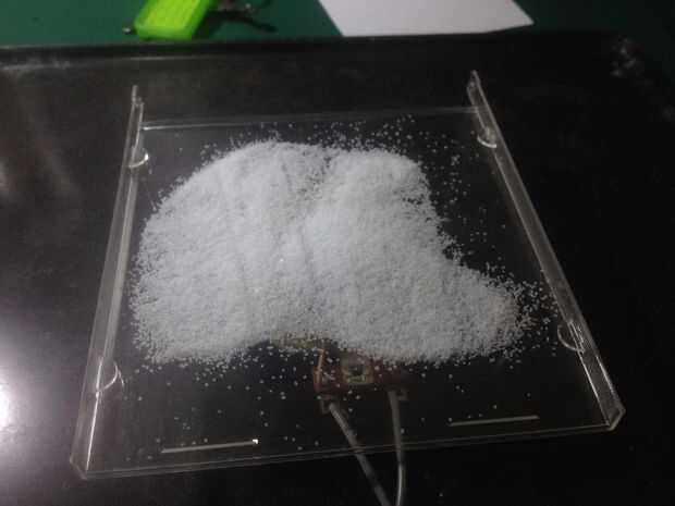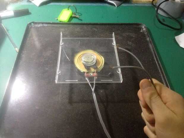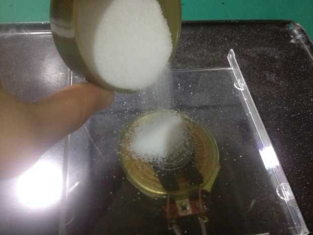 Ahora podemos verter algo de sal (o algún otro polvo) en la parte superior del altavoz.
