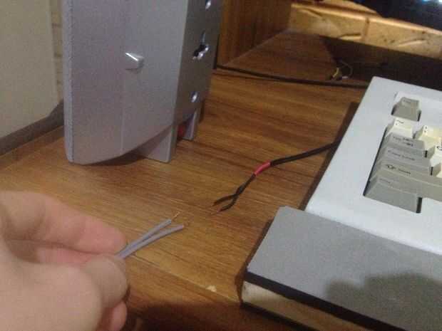 Si tu amplificador ya está conectado a los altavoces como el mío, asegúrese de desconectarte de todos ellos, baje el volumen del sub-woofer todo el camino si lo tiene construido en así. Ahora podemos conectar un extremo de nuestro cable de altavoz el altavoz nuevo y el otro extremo al amplificador (en mi caso, conectado a los cables que estaba usando otro orador).