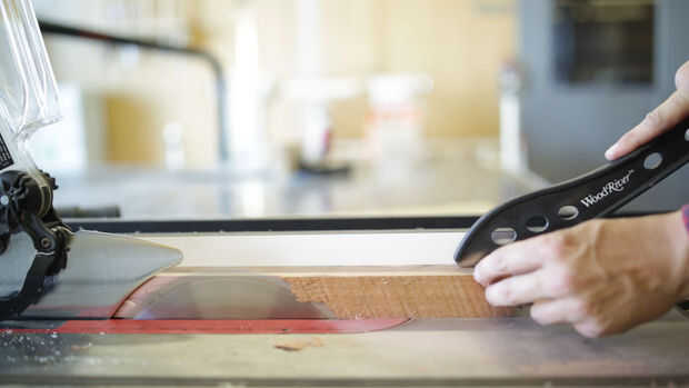 Divide el ancho de la superficie superior por 3 y cortar tres tablas a esa anchura en la mesa Sierra-éstos se laminado más adelante.