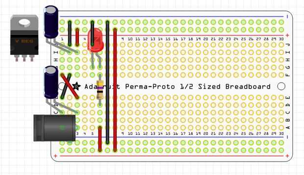 Enchufe la batería para probar su trabajo. El LED debe encenderse y el regulador de voltaje no debería calentarse.