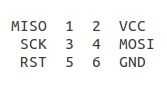 Lo llamada un ayudante de protoboard IDC es la cabecera en circuito serie programación (ICSP). No tengo la parte de Fritzing así que sólo tienes que imaginar que está ahí. Parece que la parte en la segunda foto. La tercera imagen es su pinout.