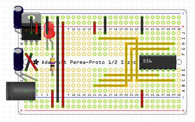 No tengo la parte de Fritzing usé un temporizador 556 para representar los 14 perno zócalo del IC.