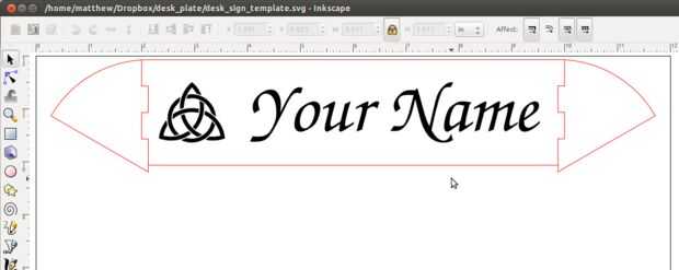 Editar el nombre y elija una fuente fría. Puede Agregar imágenes vectoriales o raster como arte para su proyecto. Cada objeto puede tener un relleno y un trazo alrededor del contorno. Para todos los objetos que desea grabar, utilice un relleno pero sin contorno. Para todos los objetos que desea cortar, no usar relleno pero añadir un contorno y asegúrese de que el contorno tiene anchura "rayita" en Corel Draw. Los colores para cada uno dependen de la configuración del cortador láser específico, pero me gusta usar negro (#000000) para el grabado y puro rojo (#FF0000) para cortes de vector.