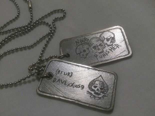 como soy adicto a jugar al campo de batalla serie en la xbox que pensé que me merecía mi propio conjunto de placa de identificacion, lamentablemente las etiquetas utilizan dentro del juego no disponible para comprar así que hice algunos.