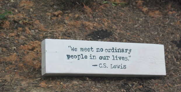 Tomé sobre una sección larga de pie de dos por cuatro había sentados, cubiertos con dos capas delgadas de color blanco exterior y luego trazó una cita a él usando una técnica de letras encontré aquí: http://thatsmyletter.blogspot.com/2011/08/p-is-for-personalize.html