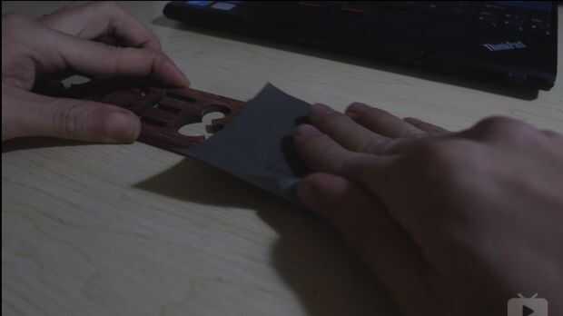La madera debe estar en el frente y el acrílico transparente debe estar en la parte posterior.