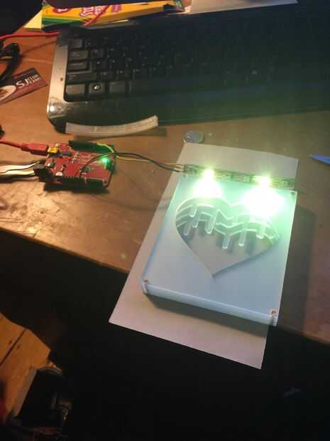 Una serie de 10mm LED colocados en una caja de madera en forma de corazón que flash utilizando un timer 555 con velocidad ajustable intermitente alimentada por una batería de 9 voltios. Tengo esta idea, porque yo estaba pensando en un regalo para mi