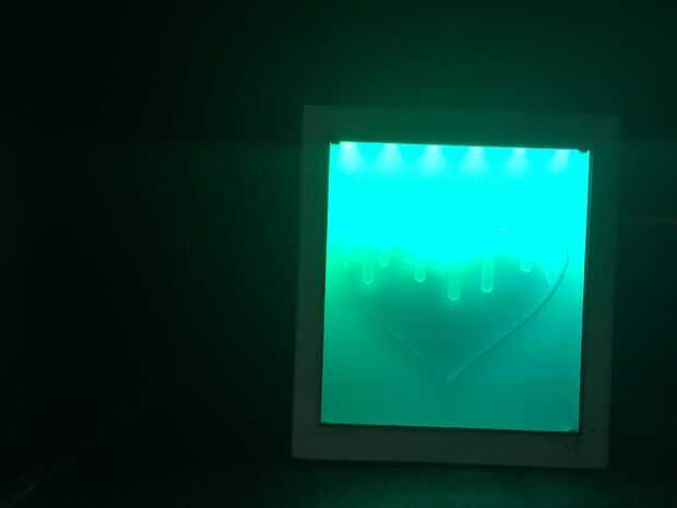 Una serie de 10mm LED colocados en una caja de madera en forma de corazón que flash utilizando un timer 555 con velocidad ajustable intermitente alimentada por una batería de 9 voltios. Tengo esta idea, porque yo estaba pensando en un regalo para mi