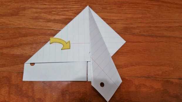 Por un lado, doblar las aletas dentro por lo que están ocultos cuando se gira el documento. En el otro lado, doblar las puntas del otro triángulo hacia usted como hacer las alas del avión. Arruga bien.