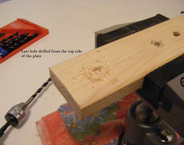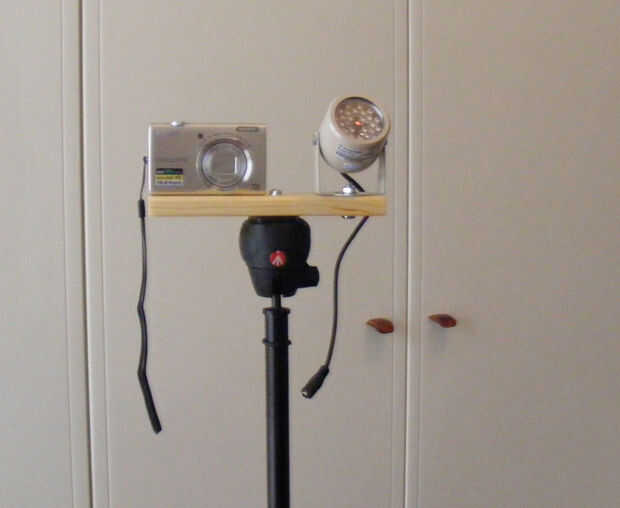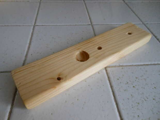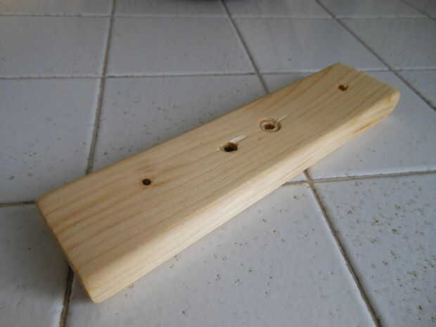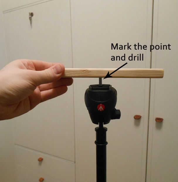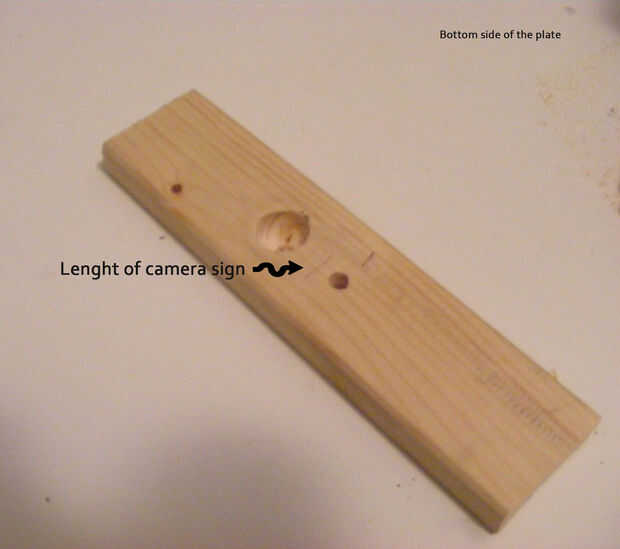 En primer lugar, informó de la longitud de la cámara de la madera, medí la distancia entre el agujero donde se fija el tornillo del trípode y el borde de la cámara. Os informamos sobre la madera y perforé. Ya que no tengo el tamaño de broca taladro adecuado, después de la perforación utilicé la dremel para agrandar el agujero al tamaño correcto de la cabeza del tornillo del trípode... Luego coloqué la madera en la cabeza del trípode donde previamente había instalado un tornillo más largo que el original y marcó el punto donde hacer el agujero. Este agujero se utilizará para conectar la placa al trípode. Por último, hice el último agujero (otra vez después de marcar el punto) y la placa se hace!
