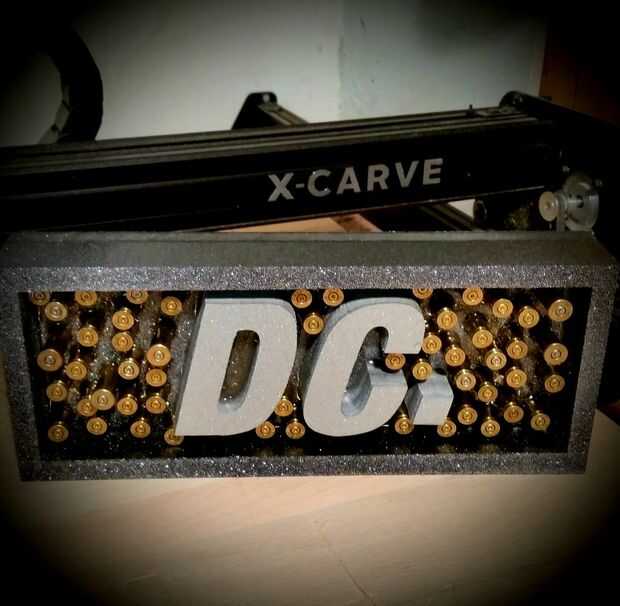 Esta placa fue muy divertido hacer (mira el video). Usé mi X-talle para cortar las letras MDF. La placa sí mismo también se hace con MDF. He decidido adornar el interior con percutidos de bala gastado, usted puede usar lo que quieras. Se trata de cómo hice esto...