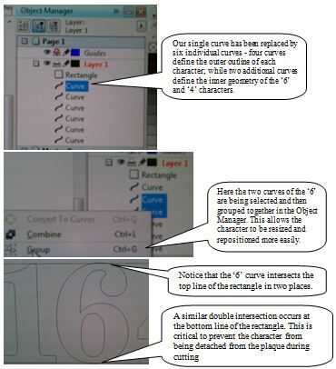 Uso de CorelDraw X 5, hemos diseñado nuestra placa para tener 6 pulgadas de altura acabada permitiendo la longitud que varían según sea necesario para la estética visual. Los cuadros adjuntos muestran los pasos fundamentales en el proceso de diseño.