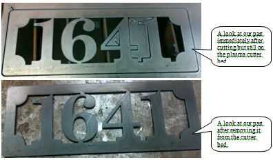 El cortador de plasma tomó menos de 3 minutos para cortar completamente la placa y los bordes cortados de la parte superior estaban muy limpias y afiladas.