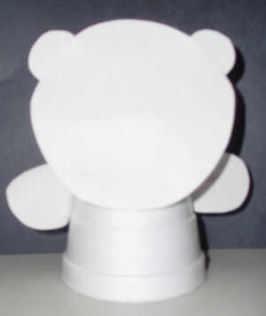 Luego corte dos orejas redondeadas más pequeñas de la pieza del plato de papel. Pegarlos sobre la cabeza del oso polar.