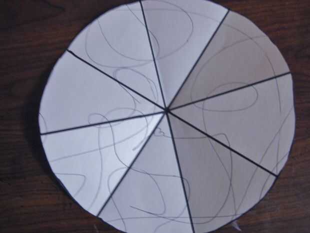 8. De los ocho sectores en el círculo, escoger el segmento de diseño que te gusta más y corta hacia fuera usando un par de tijeras