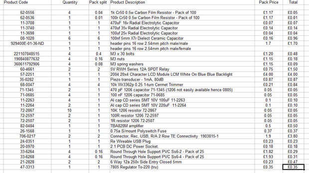 "Rápido", "71-1345", 2,1, "condensador pF 1206 470 71-1345 (1206 no fácilmente disponible ahí 0805)", 0.05, "£0,05"