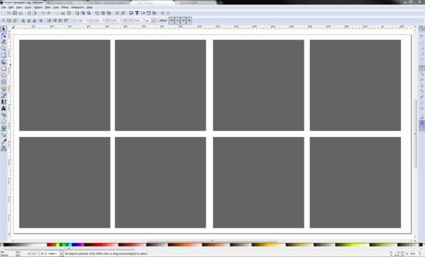 Su plaza ahora debería verse algo como esto. Si quieres placas múltiples (sugerido si imprime a menudo, para que siempre tengas un plato vacío), seleccione su plaza inicial, golpear Ctrl-D para duplicar, luego arrastre la plaza nueva a una región diferente de su lienzo. Una 24 "x 12" hoja de acrílico puede contener hasta 8 placas.