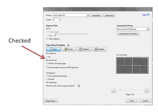 A partir de esta escritura, los controladores de impresora de Inkscape no juegan particularmente bien con cuchillas última Epilog, lo tienes que guardar tu dibujo en formato pdf y luego abrirlo en Adobe Reader cuando esté listo para imprimir. Cuando intenta guardar un PDF en Inkscape, habrá una variedad de opciones para el ahorro. Las opciones por defecto crean un archivo laserable, por lo que no cambia nada.