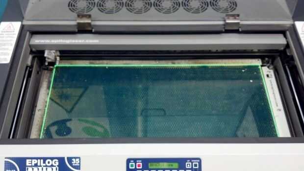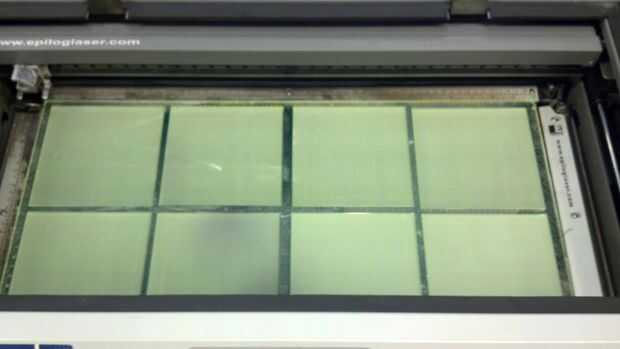 Abra el pdf en Adobe Reader, haga clic en imprimir, seleccione el cortador del laser en el menú desplegable y luego haga clic en propiedades si ya ha guardado configuraciones para varios materiales, seleccione el cuarto pulgadas acrílico. Si no, el Epilog sugieren los siguientes ajustes velocidad de trama: 100, potencia de trama: 60, Vector velocidad: 3, 100 poder de Vector, Vector de frecuencia: 5000Hz, resolución 600DPI. Haga clic en Aceptar para volver al cuadro de diálogo Imprimir, marque la casilla que dice "Tamaño real" en "opciones de tamaño:" el área de impresión para el tamaño de la hoja de acrílico y a continuación, haga clic en imprimir. Haga clic en "Ir" en su cortadora láser y ver que manos a la obra haciendo sus placas base. Cada plato tarda unos 8 minutos para completar, así que asegúrese de asignar suficiente tiempo para que el láser cortar las placas. Una vez terminada la herramienta de corte, limpie las placas con una toalla de papel húmeda para quitar todo el polvo acrílico y deje secar.