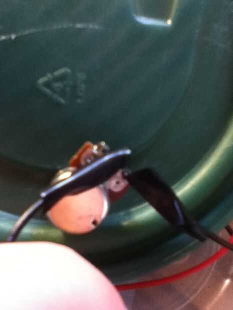 Tome el cable negativo que queda de sus baterías y lo de la soldadura o, si hay un agujero en la pierna de su potenciómetro, simplemente ponerlo a través de la pierna derecha y tuerza juntos. Aislar con cinta aislante. Hacer lo mismo con el cable negativo del ventilador, pero que va en la pata del centro. Finalmente, conecte los dos cables positivos.