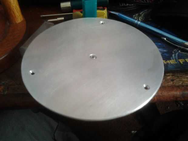 Descubrí que un plato de disco duro es un ajuste casi perfecto de la base de este motor. Requiere un poco más de un archivo en los 6 puntos donde están los tornillos. el agujero en el centro es útil ya que deja un poco frío el punto tan