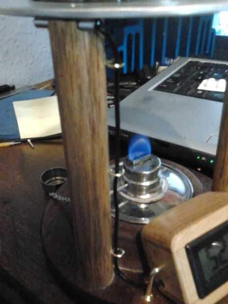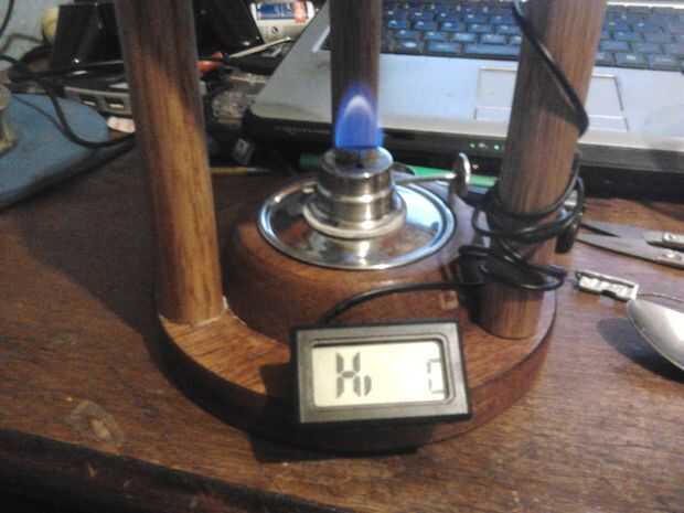 Me enfermé de quemarse con la sonda en la placa así que utilizado un trozo de puede inferior para fabricar un clip para sujetar la sonda al borde de la placa, creo que hay una temperatura más alta en el centro de la placa donde se concentra el calor estoy adivinando su salida por sobre 15-20 * c (puedo equivocarme Puedo conseguirlo comprobado)
