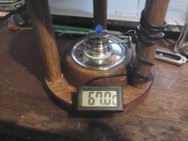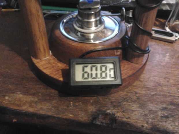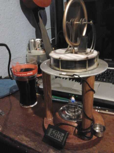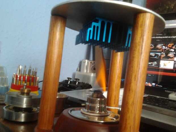 Con el disipador de calor en el lugar una ampliación mejor conductor, mejor esteras y una lectura de temperatura digital ahora puedo tener este pequeño soldado de y motor chugging lejos durante horas en un tanque lleno de quemar sin el temor de que auto destructiva. El motor ahora se ejecuta bien en y ahora funciona en mi calor de mi mano todo será muy lentamente.