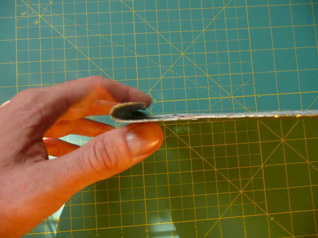 Doblar un extremo de la placa de 3/4" o 2cm. Esto no hace falta ser muy exactos. Esta ficha poco ayudará a mantener la funda pegada en su cinturón o pantalones.