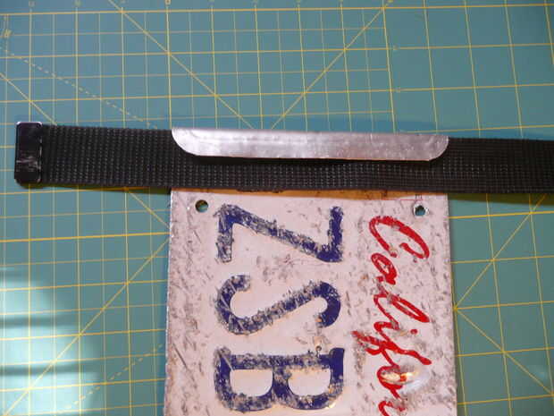 Doblar la placa hacia abajo más allá de la anchura de la correa. Ahora ha crear la porción pasador de cinto o pantalón-clip.