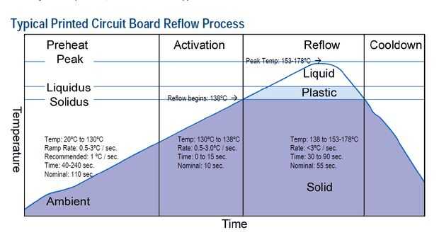 Todo el circuito se calienta para que la soldadura se derrite y reembolsos, baja temperatura de la soldadura de estaño bismuto se ajusta entre 150° C y 175° C. El objetivo es minimizar el tiempo que el animal es expuesto a alta temperatura, por lo tanto, calentamos la placa de acero a más de 150° C con prontitud pero sin sobrepasar esa temperatura durante mucho tiempo. Esto puede tomar algún ensayo y error. Para nuestra placa de acero inoxidable grueso 1 mm encontramos que ajuste la placa a alrededor de 260° C alcanzada la temperatura de reflujo en poco más de un minuto y toda la soldadura adaptarse en unos 30 segundos. La superficie alcanza unos 160° C.