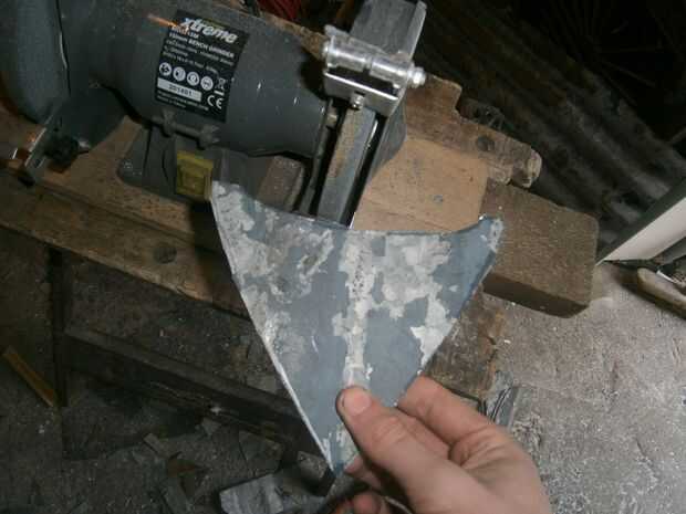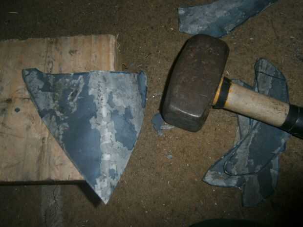 Descansar el metal en el borde de su juego improvisado y, usando un martillo, golpee las piezas hasta que una línea recta está doblada en cada pieza. Esto sólo es efectivo en los primeros pocos tipos de placa. Si hay una forma cónica recta en la placa más cercana al tobillo entonces será incómodo de usar y ver también fabricados por defecto.