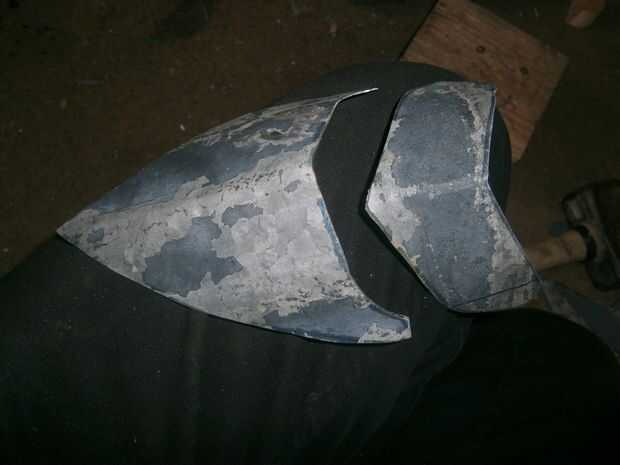 [{Nota} también he añadido una tira de placa para envolver alrededor de la canilla inferior para fijar el sabaton. Es fácil, toma una tira del metal y fije a la placa más alejado los dedos].
