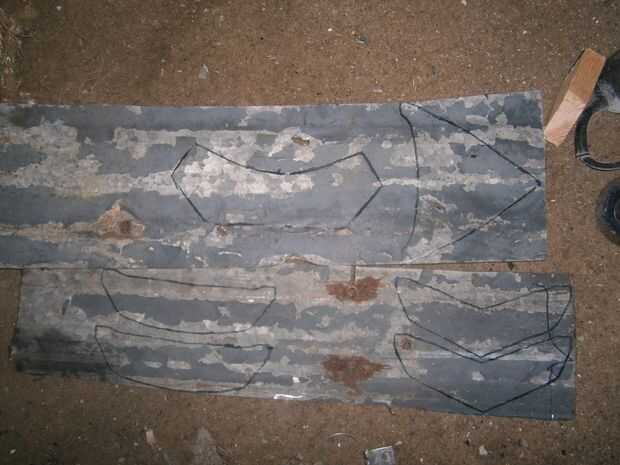 Trazar las plantillas sobre el metal que usted ha elegido y empezar cortando cuidadosamente. Decidí duplicar dos de las plantillas para hacer frente a problemas de tamaño de la parte delantera del tobillo a la parte superior de mi dedos de los pies. Por encima puede ver qué plantillas opté por recrear.
