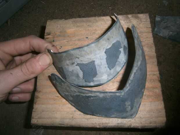 Lo mismo que la forma cónica lineal pero no descansar la placa firmemente en el borde, curva de metal girando ligeramente después de un suave golpe de martillo. Finalmente las placas se curvan naturalmente y se ven más fluido contra el pie.