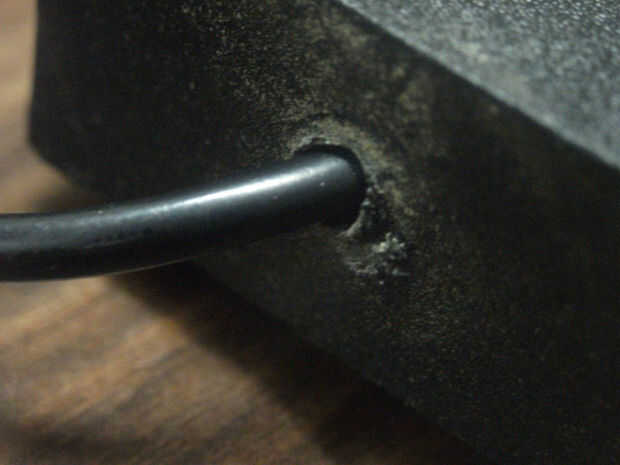 Hacer otro agujero en un lado de la base. Es donde pasa el cable USB.