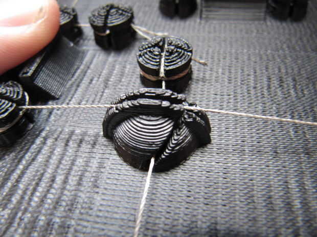 3. cuando se ejecuta entre las clavijas, tienen el hilo sale del centro (en comparación con alrededor del lado) una sujeción más firme con la tapa y trazas rectas en incrementos de 90 grados.