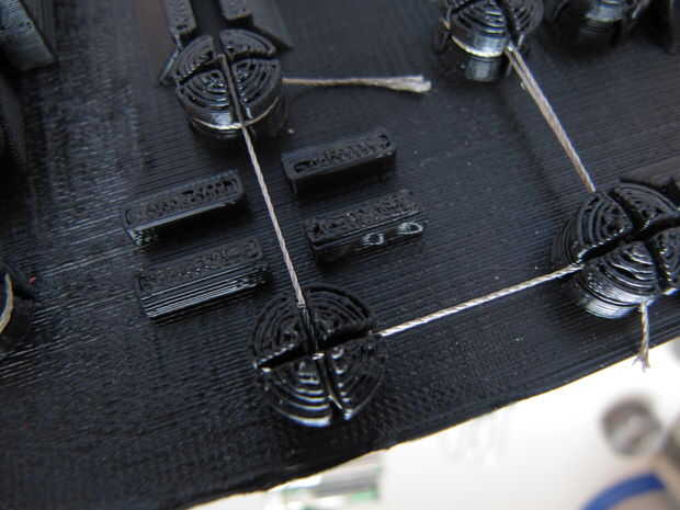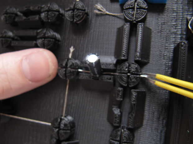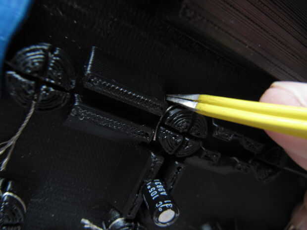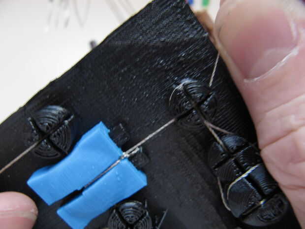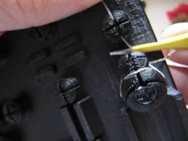 5. Inserte los tapones de peg una vez que los componentes estén en su lugar. Si hay un exceso de hilo en la clavija, tire firmemente, inserte la tapa y luego cortar el exceso.