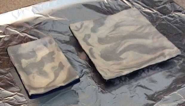 Hornear la arcilla mientras que todavía está en la placa. Si usted a pulso su placa u hornear sin un molde puede caer al mismo tiempo de cocción por lo que no recomendamos hacerlo. Hornear la arcilla normalmente según las instrucciones del envase, estos paquetes a 275 F por 15 minutos cada 1/8 de pulgada. Después de terminado, quite tan pronto son solo suficientemente frías al tacto. Cuanto más esperas, más endurecen y es más fácil tirar de cuando son un poco flexibles. Mis placas no tienen residuo o problemas del horno sin embargo todavía tendría cuidado sobre eso.