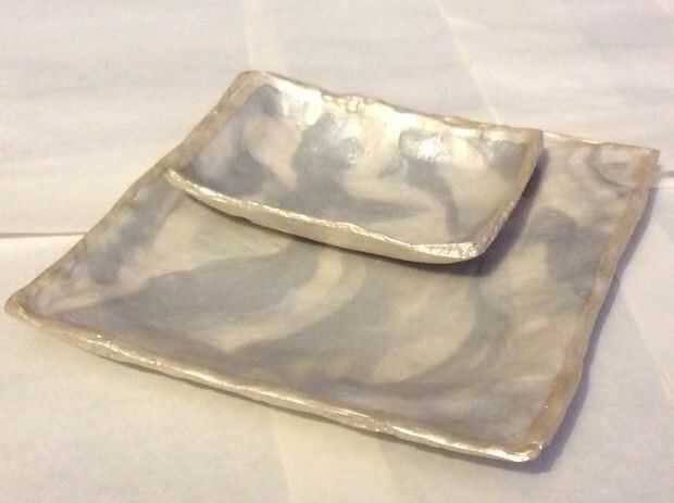 -Trate de más de un color de arcilla y diferentes tonos para que coincida con la zona donde van a quedar los tazones de fuente. Fui para un estilo clásico del mármol con la perla y plata pero negro y marrón/blanco podrían ser aún mejor