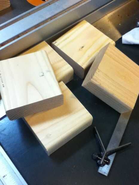 En este instructable, estoy utilizando material de desecho 2 X 4. Empezar por bloques cuadrados de corte. Usé una sierra para cortar ingletes para esto junto con un bloque de tope para precisión repetitiva.
