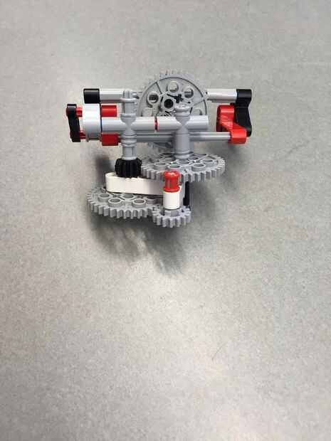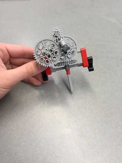 Crear un sistema de engranajes usando cualquier producto conveniente hacer girar algo con un ángulo de 90 grados. En nuestro caso hemos utilizado la kinex lego. Jugar con diferentes velocidades para diferentes velocidades.
