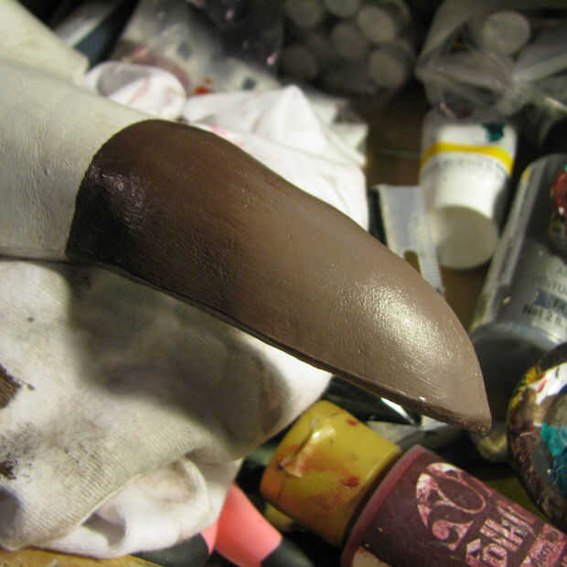 Dejar secar hasta que duro. En pintura blanca. Hice un ligero lavado de burnt umber para darle un aspecto envejecido. Consejo de pintura de pico con umber quemado como tal.