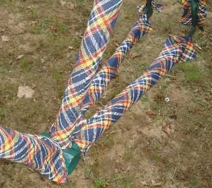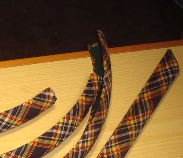 Apliqué el paño, centrado a los tubos dejando el resto colgando libre. Sólo estaba tratando de centro de la tela sin perder el patrón que es fácil de perder cuando se ejecuta el paño diagonalmente. Sólo las copas de hacer y tiene que configurar para que cuando termine la envoltura no cambio el patrón alrededor. Suavizar con los dedos sería limpiar las manos con frecuencia. Me fui en los otros tubos dejando este montaje recto.