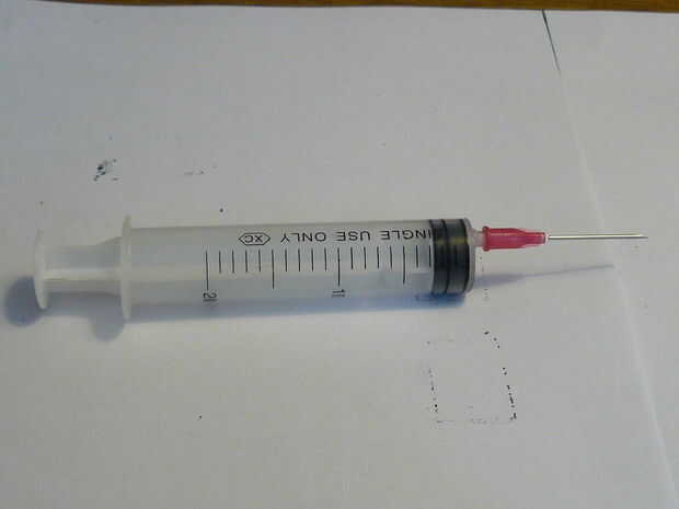 Primero, retire el adhesivo de la parte superior (no la una de la parte inferior). Esto expone 2 agujeros. Si es posible, utilice una jeringa para extraer la mayor parte de la tinta. Puede almacenar para uso posterior o simplemente descartar de ella (sé es una lástima, pero es un mal necesario). Cuando la jeringa ya no chupa cualquier tinta, es tiempo de pasar al siguiente paso.