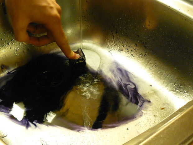 Hacer todo en una capa gruesa de periódico o sobre el fregadero. Nunca tenía cualquier derrame, pero cuando tienes uno, te garantizo que usted nunca será capaz de limpiar esta tinta de. Es tan fuerte que diluir la tinta más de 100 veces deja un color opaco, claramente negro.