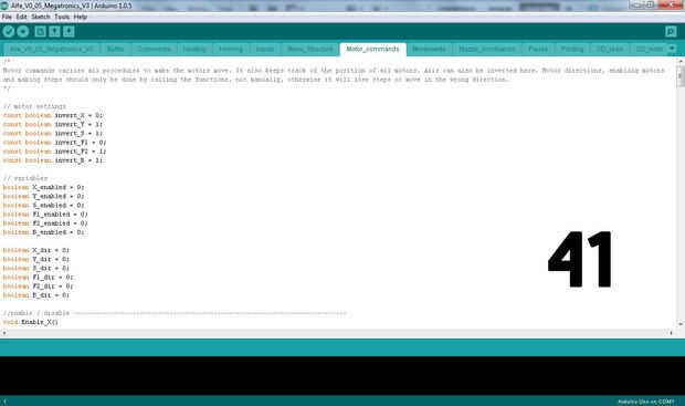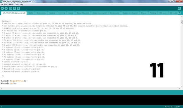 El firmware es lo que controla la impresora. Escrito en Arduino y pueden configurarse y cargado usando el programador de Arduino. Esta versión (a menos que se indica lo contrario en el firmware) es para Megatronics V3. Asignación de pines diferentes Megatronics abordo es completamente diferente, así que por favor tener cuidado con esto. el IDE de Arduino puede descargarse en th