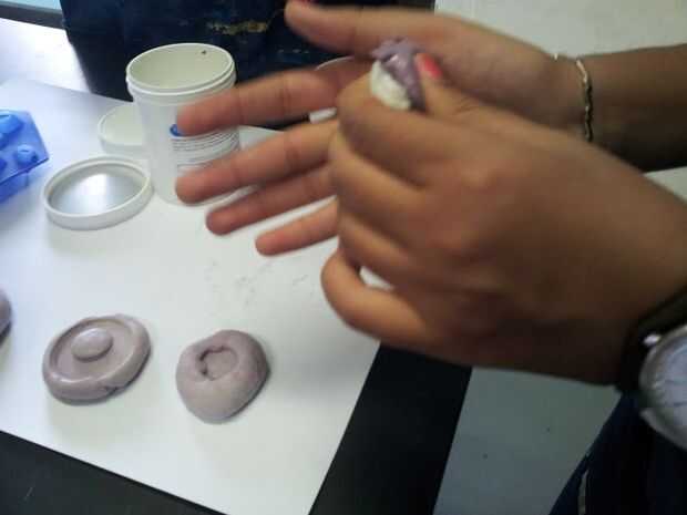 1. Después de que el molde de madera ha sido tallado, ahora se utilizar para hacer un molde de silicona.